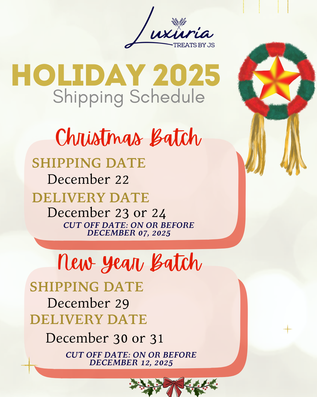 Elevate your celebrations with our Custom Cakes! Imagination meets flavor as we craft unique edible masterpieces tailored just for you. From design to delivery, our seamless process ensures a stress-free experience. Choose Luxuria Treats by JS' for quality, timely delivery, and a taste that lingers in memories. Order your slice of perfection today!